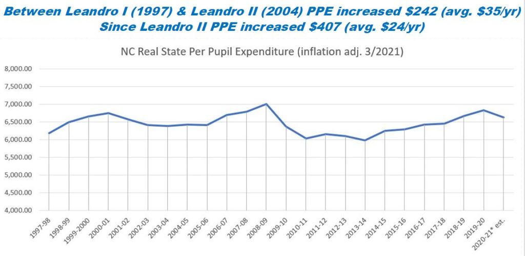That same civics textbook includes a summary of the Leandro case requiring this additional support, though it shows its age with a 2008 version of our state’s progress toward fulfilling that duty.