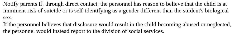 Teachers are already mandatory reporters if we believe a student is being harmed by others, may harm themselves, or may harm someone else. This provision elevates identifying as gender nonconforming to that level of harm.