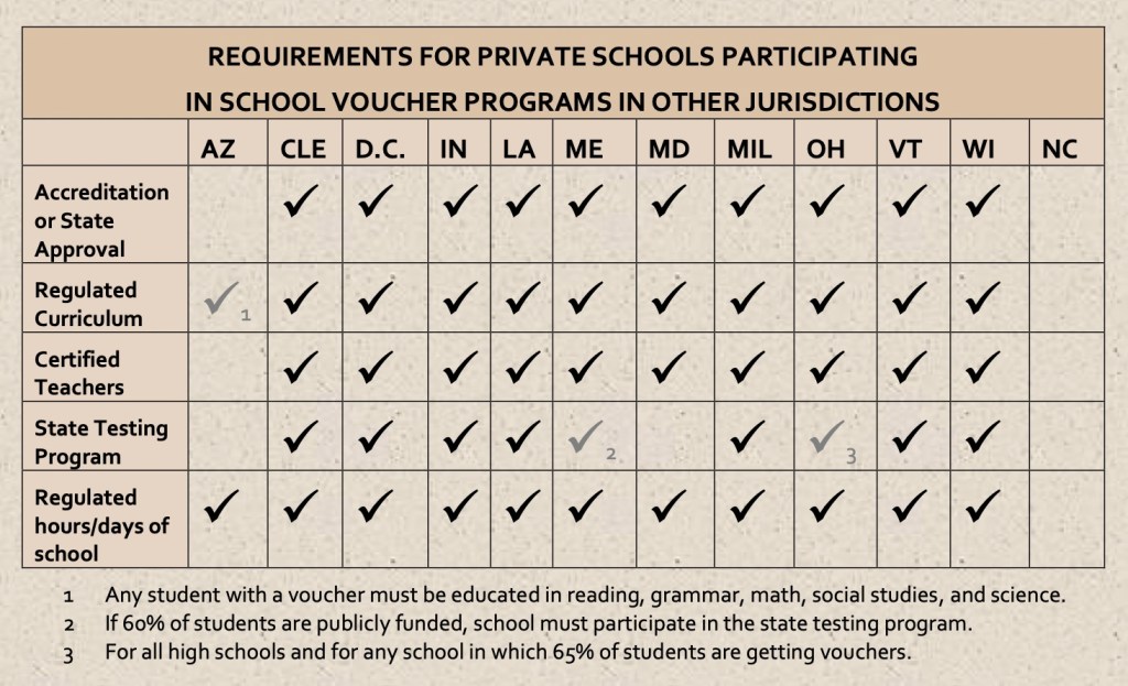 Heck, as the least regulated private school voucher program in the country, North Carolina doesn’t regulate the number of hours or days instruction is offered by a voucher-receiving private school.