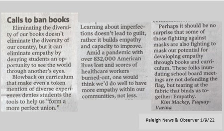 Raleigh News & Observer: Letter to the Editor – Calls to ban books